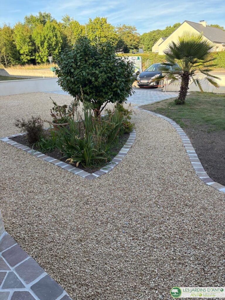 – Allée en gravier granit jaune 6/10, posée sur plaques de Nidagravel.