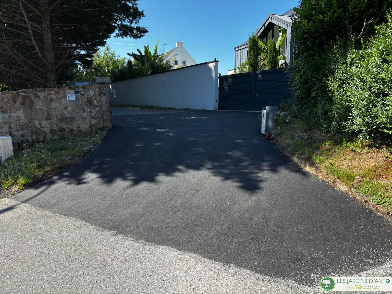 Décaissement, mise à niveau et empierrement avant la pose de l’enrobé.